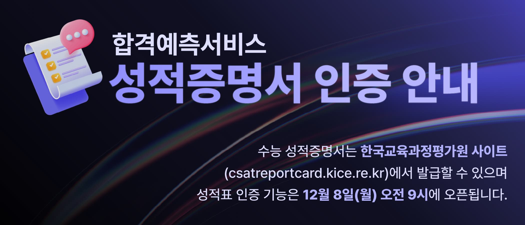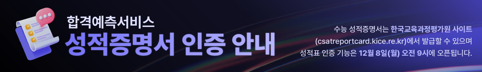 수능 영역별 최고점을 반영하는 방식으로, 수능 채점 이후 변화가 있습니다.